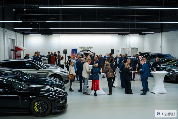 On Thursday, January 22nd, Signium Belgium had the pleasure of welcoming over 100 guests to the prestigious Aston Martin showroom in Brussels. This event, the second annual Back to Work Cocktail, was honored by the presence of Mr. Axel Miller, Chief of Staff of the President of the Mouvement Réformateur.